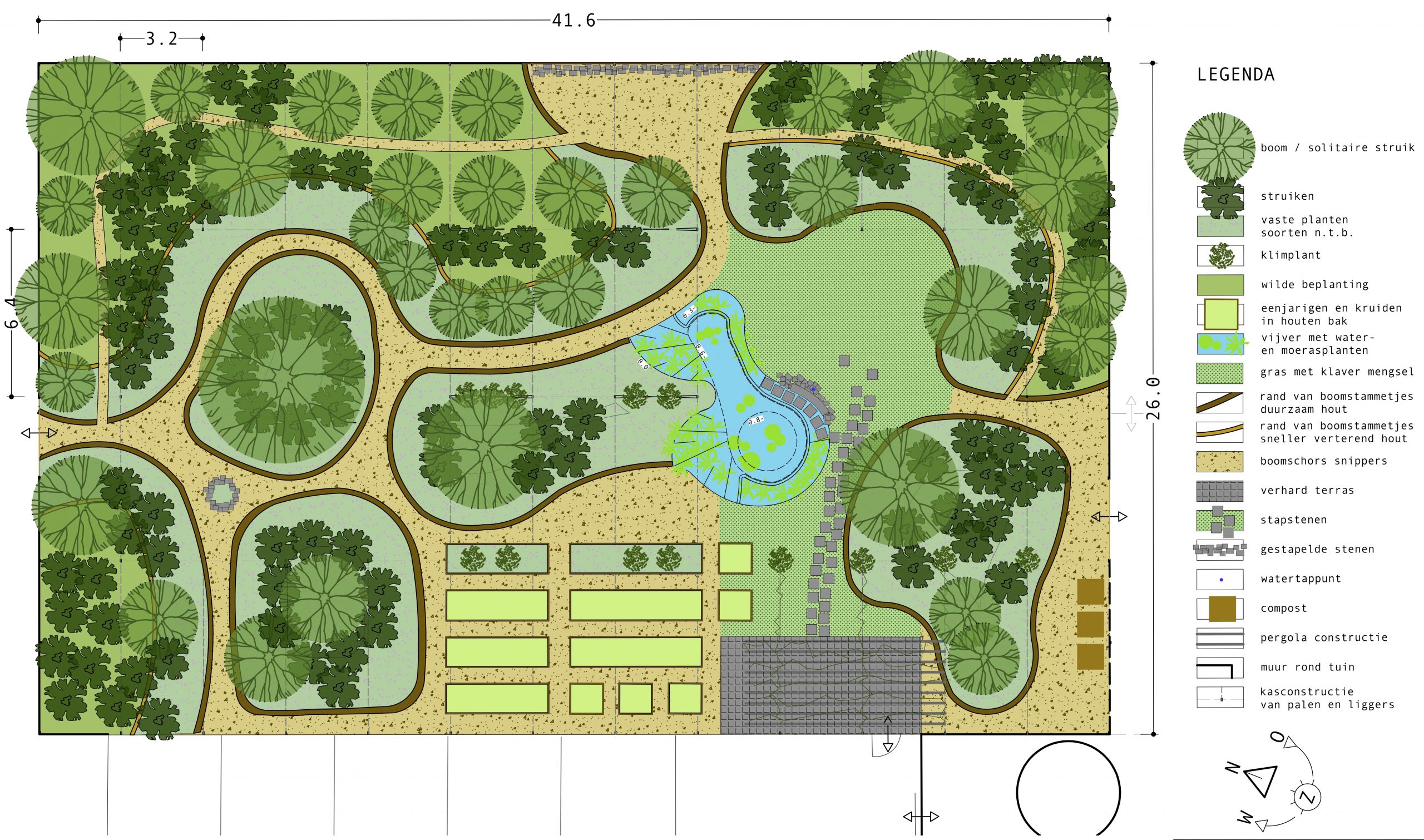 Dit terrein van een voormalige kwekerij in Stellendam heeft een woonfunctie gekregen, waarbij een gedeelte van de kassen is gehandhaafd als zomerverblijf naast de nog de nog te realiseren hoofdwoning. Door van 1 van de kassen het dak te verwijderen is een bijzondere ommuurde ruimte ontstaan waarvoor het ontwerp als eetbare siertuin is opgesteld. In het voorjaar van 2021 is met behulp van de bewoners, hun familie en vrienden en vrijwilligers van Coöperatie Ondergrond de beplanting aangebracht.